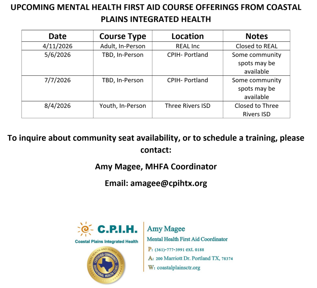 You are more likely to encounter someone – a friend, family member, student, neighbor, or member of the community – in an emotional or mental crisis than someone having a heart attack. Mental Health First Aid teaches a 5-step action plan that identifies signs and symptoms of someone with a mental illness or who is in crisis, and connects them with the appropriate professional, peer, social, or self-help care.